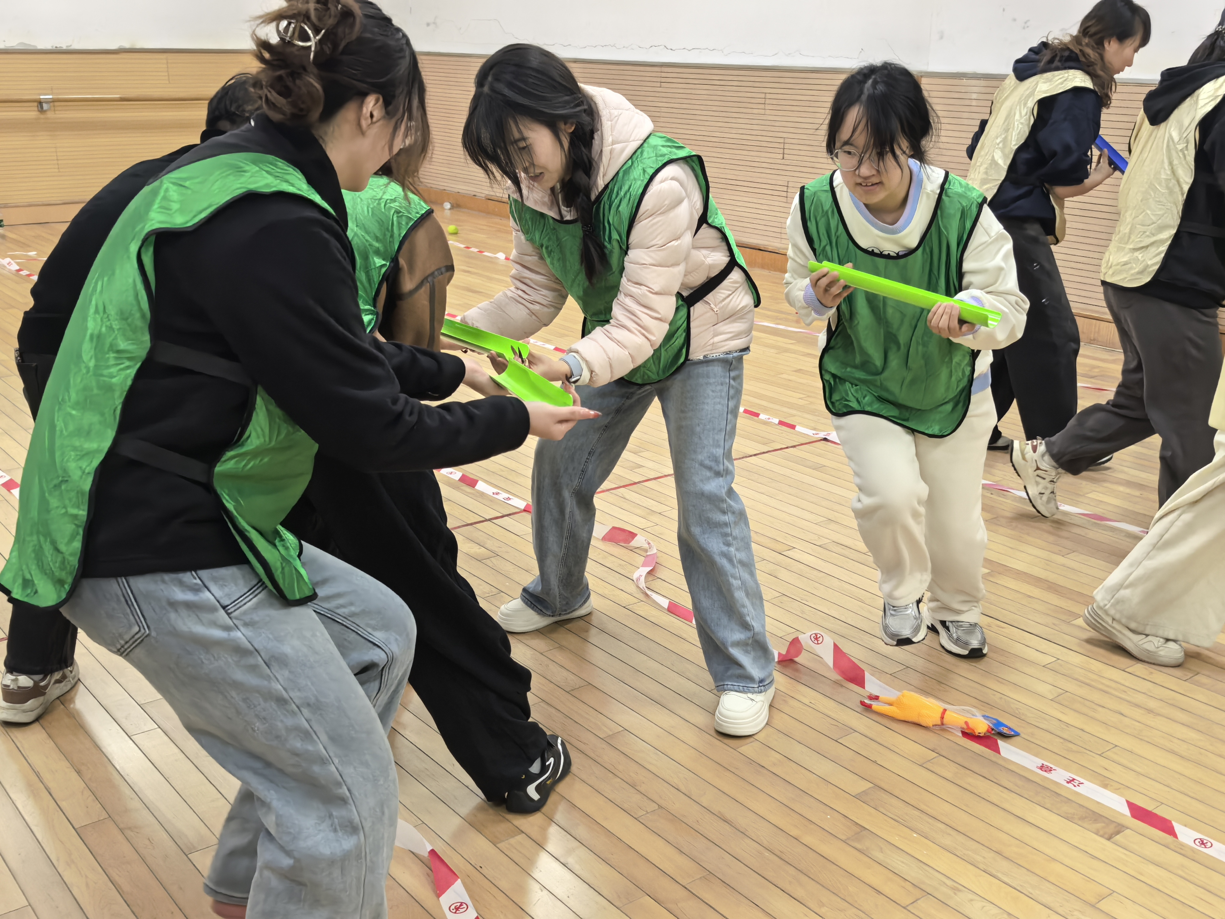 運(yùn)動(dòng)會(huì)設(shè)置了小豬快跑、珠行萬里、蒙眼對(duì)決等五個(gè)別具創(chuàng)意的項(xiàng)目,不僅考驗(yàn)著個(gè)人在速度上的爆發(fā)力與技巧上的精準(zhǔn)度,更在一次次協(xié)作闖關(guān)過程中,悄然培養(yǎng)了團(tuán)隊(duì)成員間協(xié)作配合的默契。經(jīng)過近兩小時(shí)的激烈角逐,最終“金隊(duì)”以總積分38分榮獲一等獎(jiǎng),“紅隊(duì)”與“黃隊(duì)”分別獲二、三等獎(jiǎng)。此次大賽為我院研究生搭建了切磋競(jìng)技、釋放青春活力的平臺(tái),更凝聚起團(tuán)結(jié)向上的精神力量。無論是選手們?nèi)_刺的身影、隊(duì)員間的默契配合,還是場(chǎng)邊觀眾此起彼伏的加油吶喊,都定格成本次活動(dòng)最鮮活動(dòng)人的記憶。