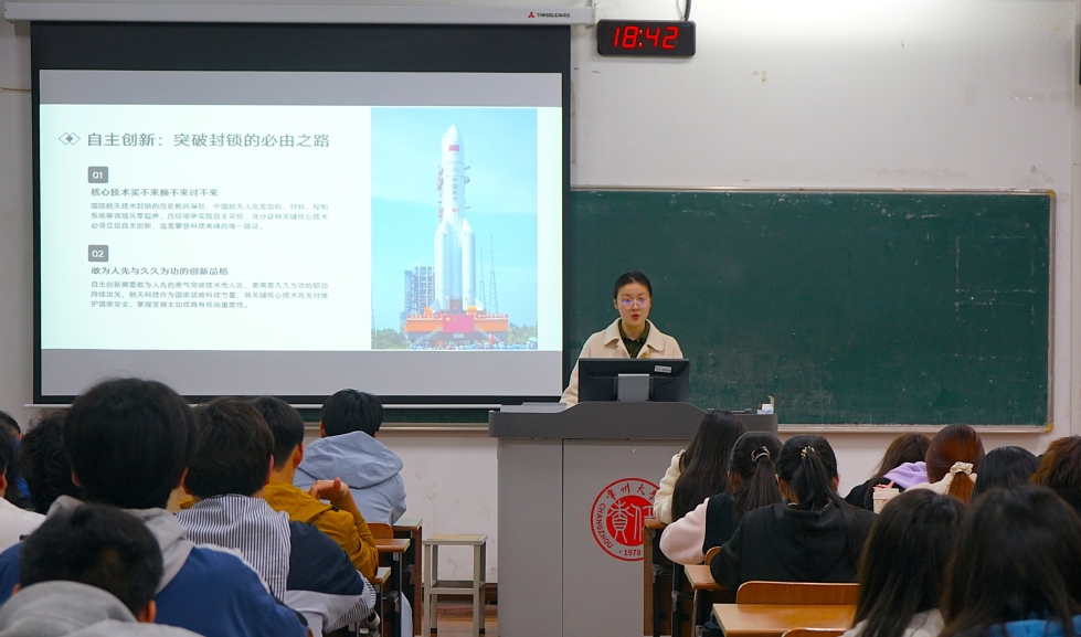 講座緊扣“攻堅(jiān)航天關(guān)鍵技術(shù),勇攀科技自立高峰”主題。宋雅靜圍繞航天強(qiáng)國(guó)建設(shè)藍(lán)圖,系統(tǒng)梳理新時(shí)代我國(guó)航天事業(yè)的輝煌成就,解讀邁向航天強(qiáng)國(guó)的戰(zhàn)略路線,闡明青年在科技自立自強(qiáng)中的實(shí)干擔(dān)當(dāng);王思懿則從中國(guó)航天的時(shí)代跨越切入,詳解可重復(fù)使用技術(shù)等核心領(lǐng)域的攻堅(jiān)突破,梳理前沿裝備的創(chuàng)新成果,傳承航天人自力更生、無(wú)私奉獻(xiàn)的精神內(nèi)核,號(hào)召青年投身強(qiáng)國(guó)復(fù)興偉業(yè)。