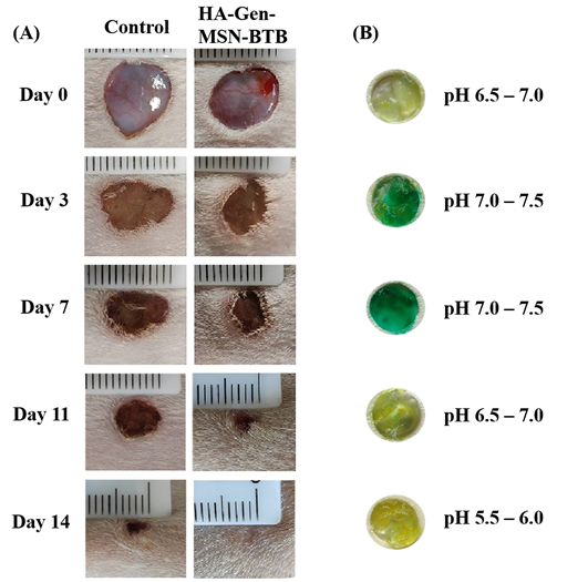 在臨床傷口護理中,實時監(jiān)測創(chuàng)面的愈合進程對評估愈合狀態(tài)及預防感染至關重要。近日,孔泳教授課題組和嘉興大學、常州中醫(yī)醫(yī)院相關課題組合作,開發(fā)出一種“可示蹤”智能水凝膠用于傷口治療。透明質(zhì)酸和慶大霉素通過酰胺鍵形成水凝膠,負載了pH指示劑的介孔二氧化硅通過靜電作用和氫鍵與水凝膠結(jié)合。水凝膠可通過酰胺鍵的水解實現(xiàn)自降解,從而釋放慶大霉素有效抗菌。另外,負載的pH指示劑顏色會隨傷口微環(huán)境pH值變化而改變,可實現(xiàn)可視化監(jiān)測傷口愈合進程,避免了頻繁的采樣、分析過程。本項工作發(fā)表于Anal. Chem. (Anal. Chem. 2026, 98, 1607?1616)。